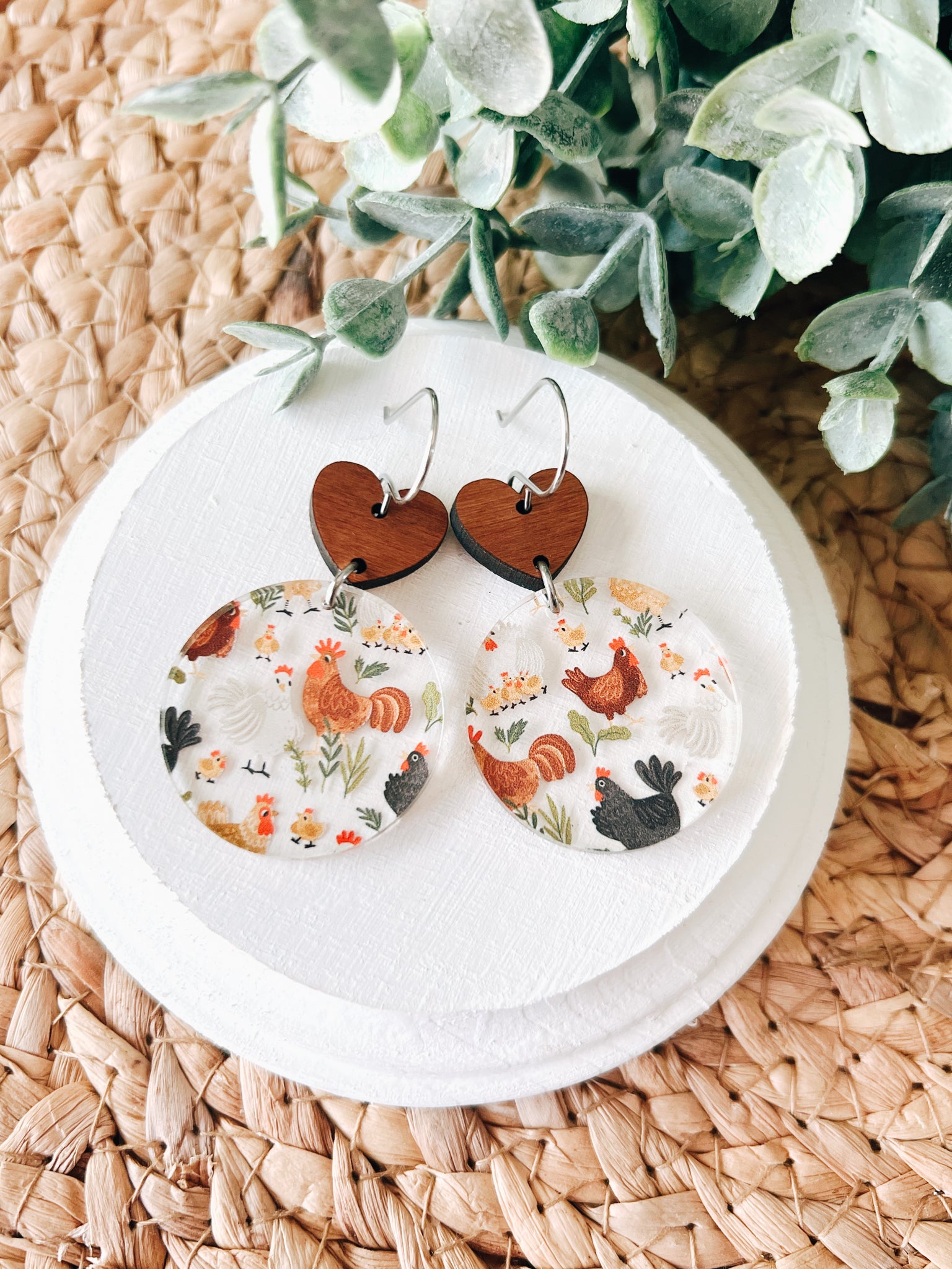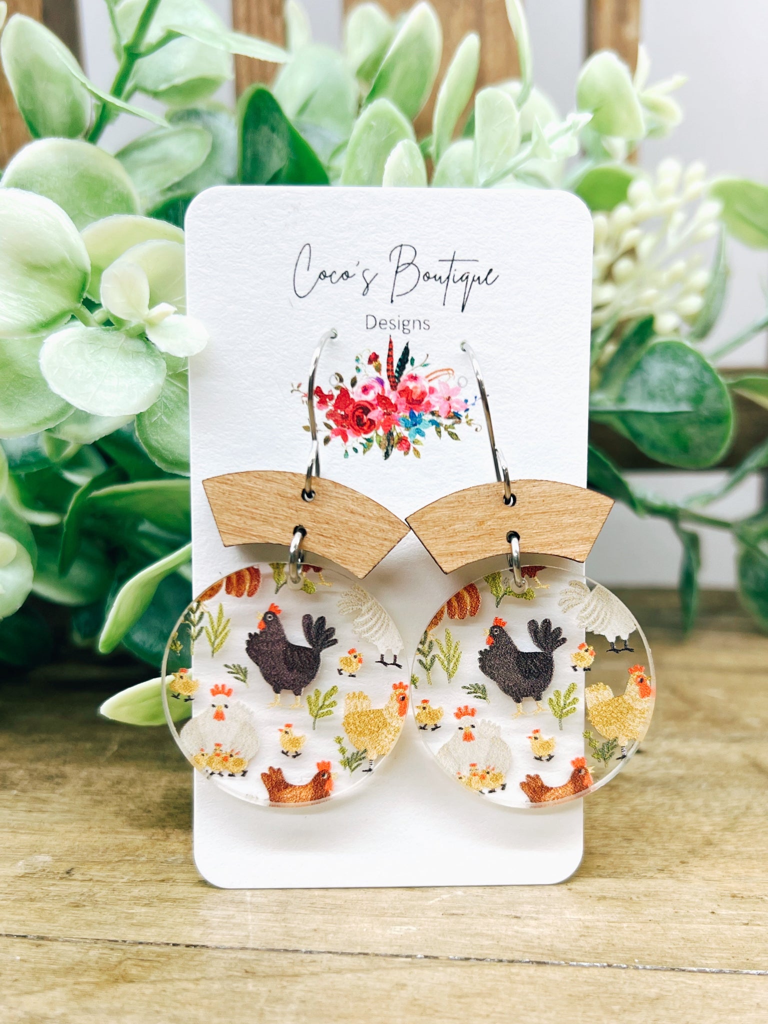 Add a splash of country charm and quirky flair to your style with these adorable chicken earrings! Handcrafted with a delightful mix of acrylic and wood, these lightweight beauties feature vibrant chicken designs that are sure to turn heads and spark smiles. Finished with stainless steel hooks for comfortable, hypoallergenic wear, they’re perfect for everyday fun or as a standout accessory for farm lovers and animal enthusiasts alike.